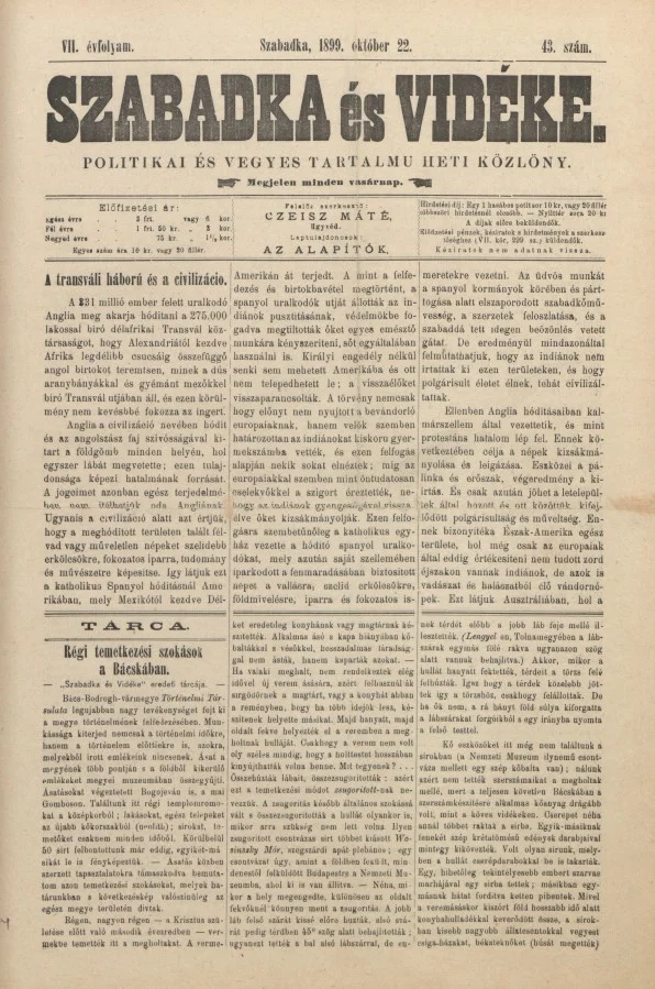 Szabadka és vidéke II, 7. évf. 1899. október 22. 43. sz.