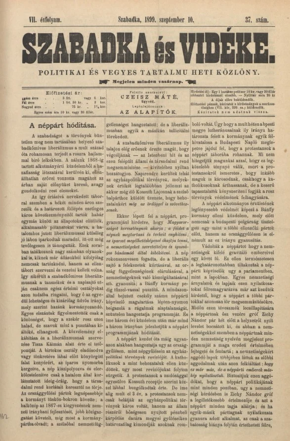 Szabadka és vidéke II, 7. évf. 1899. szeptember 10. 37. sz.