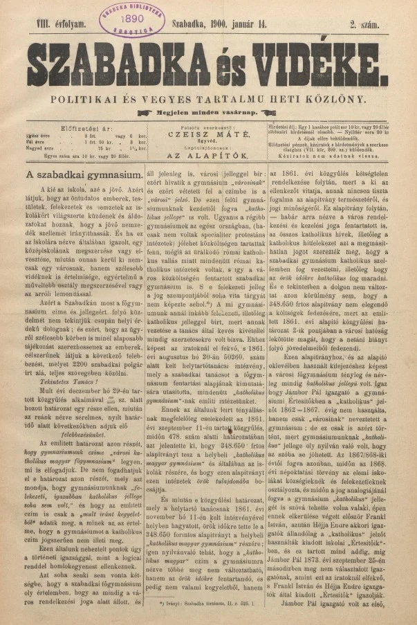 Szabadka és vidéke II, 8. évf. 1900. január 14. 2. sz.