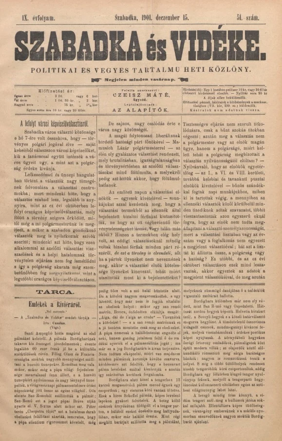 Szabadka és vidéke II, 9. évf. 1901. december 15. 51. sz.