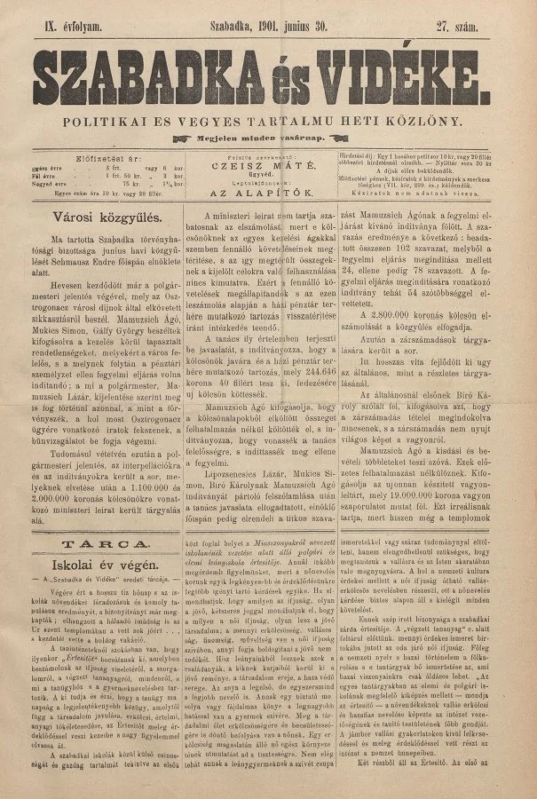 Szabadka és vidéke II, 9. évf. 1901. június 30. 27. sz.
