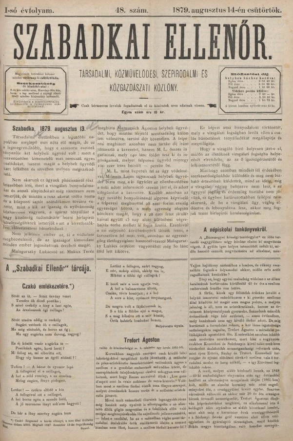 Szabadkai Ellenőr, 1. évf. 1879. augusztus 14. 48. sz.