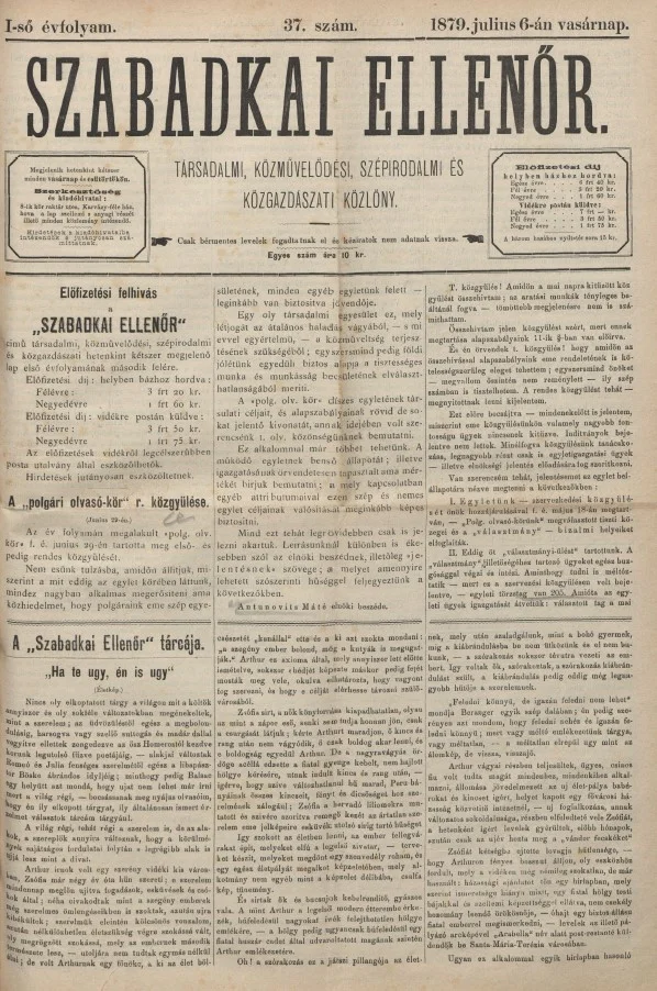 Szabadkai Ellenőr, 1. évf. 1879. július 6. 37. sz.