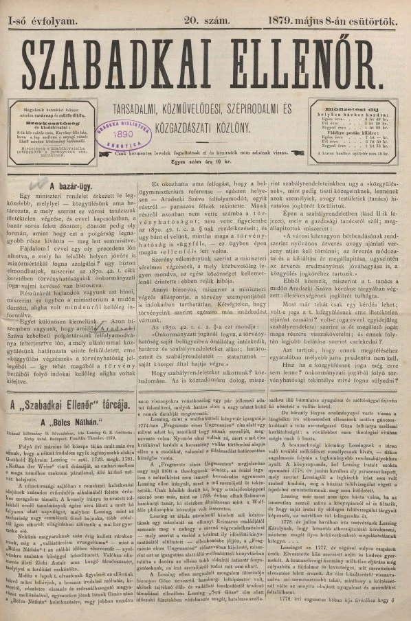 Szabadkai Ellenőr, 1. évf. 1879. május 8. 20. sz.