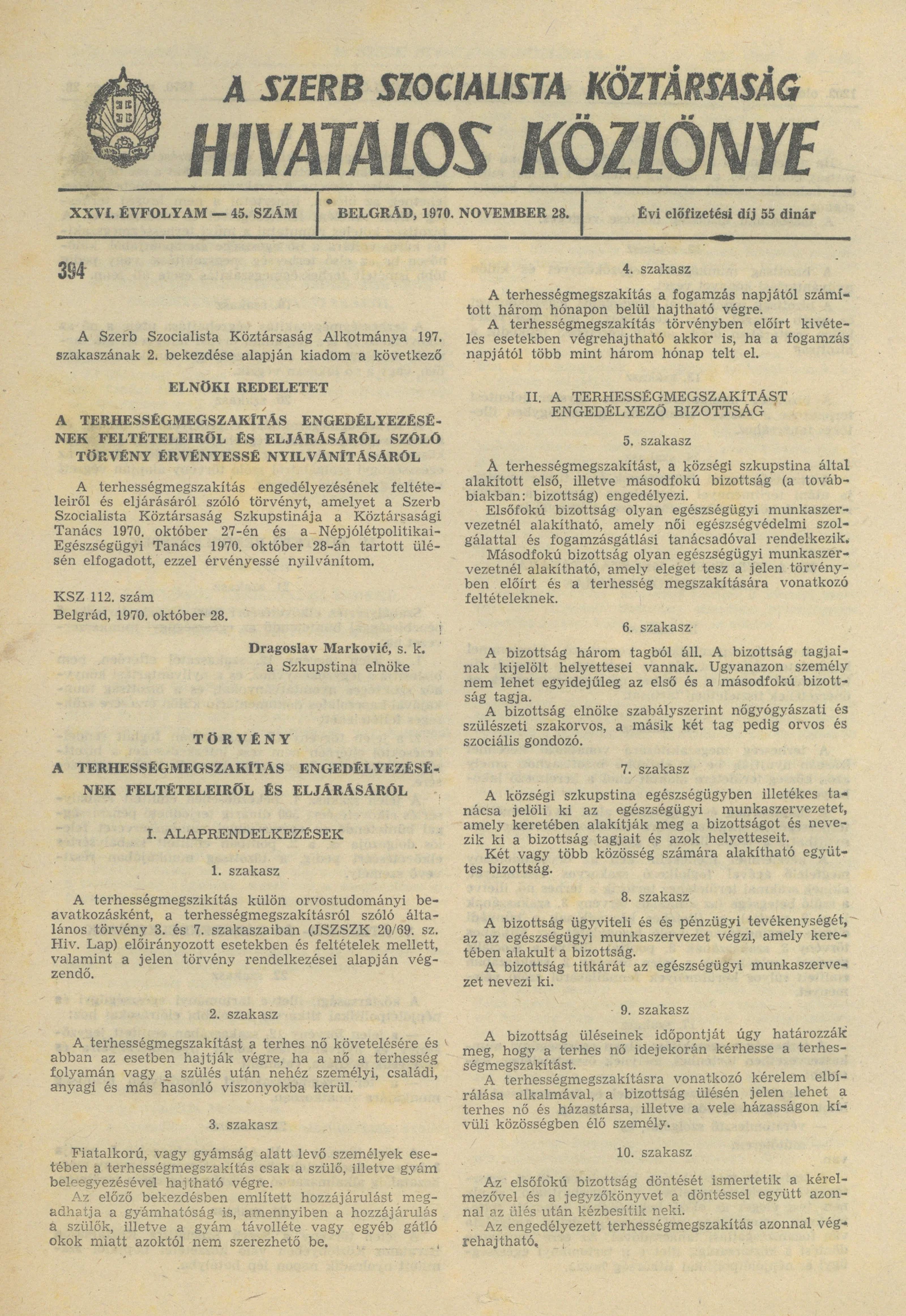 A Szerb Szocialista Köztársaság Hivatalos Közlönye, 26. évf. 1970. november 28. 45. sz. 1201–1208. oldal