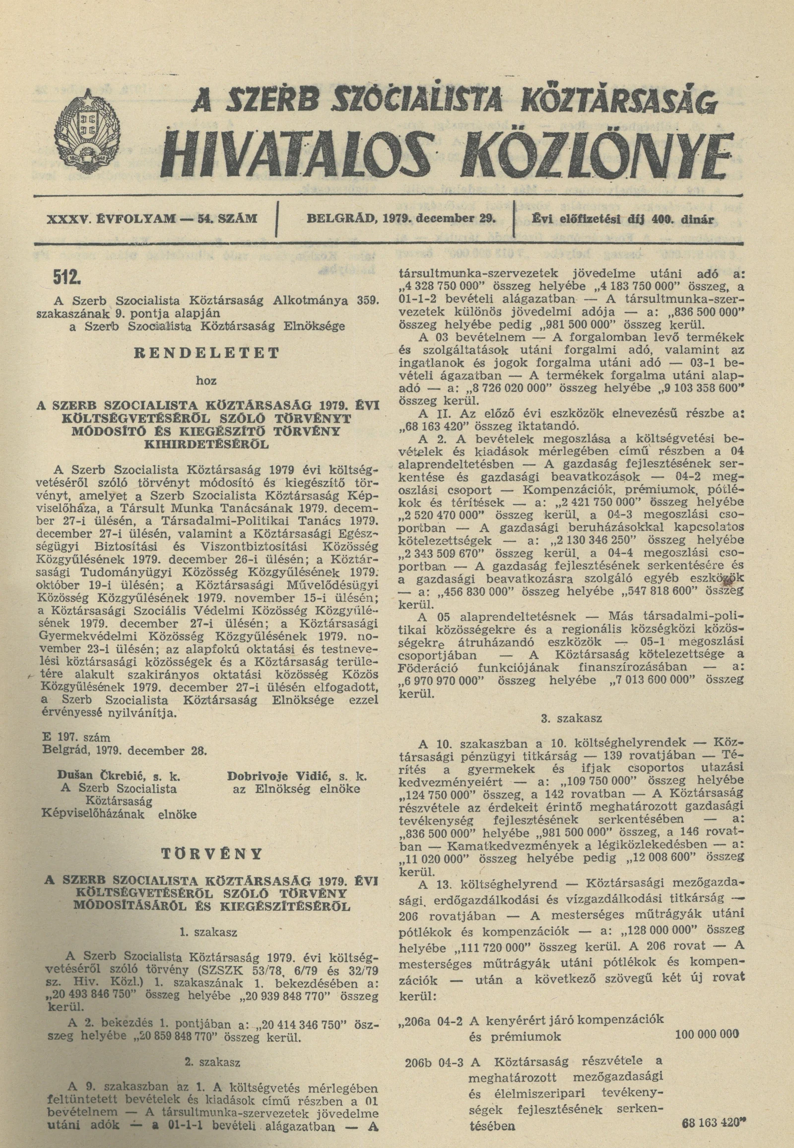 A Szerb Szocialista Köztársaság Hivatalos Közlönye, 35. évf. 1979. december 29. 54. sz. 2097–2100. oldal
