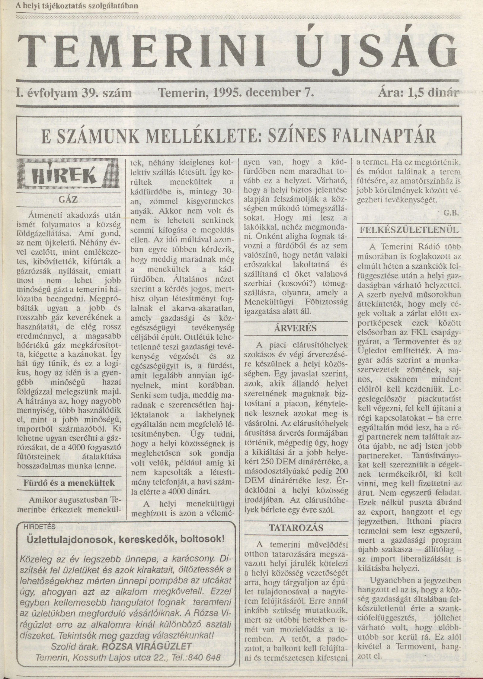 Temerini Újság, 1. évf. 1995. december 7. 39. sz.
