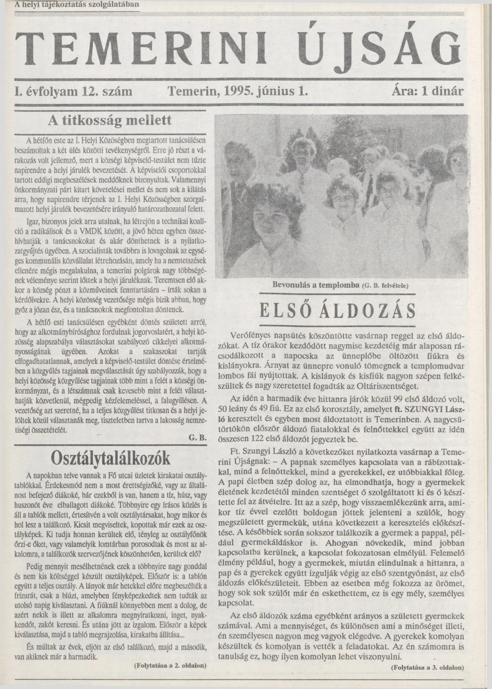 Temerini Újság, 1. évf. 1995. július 1. 12. sz.