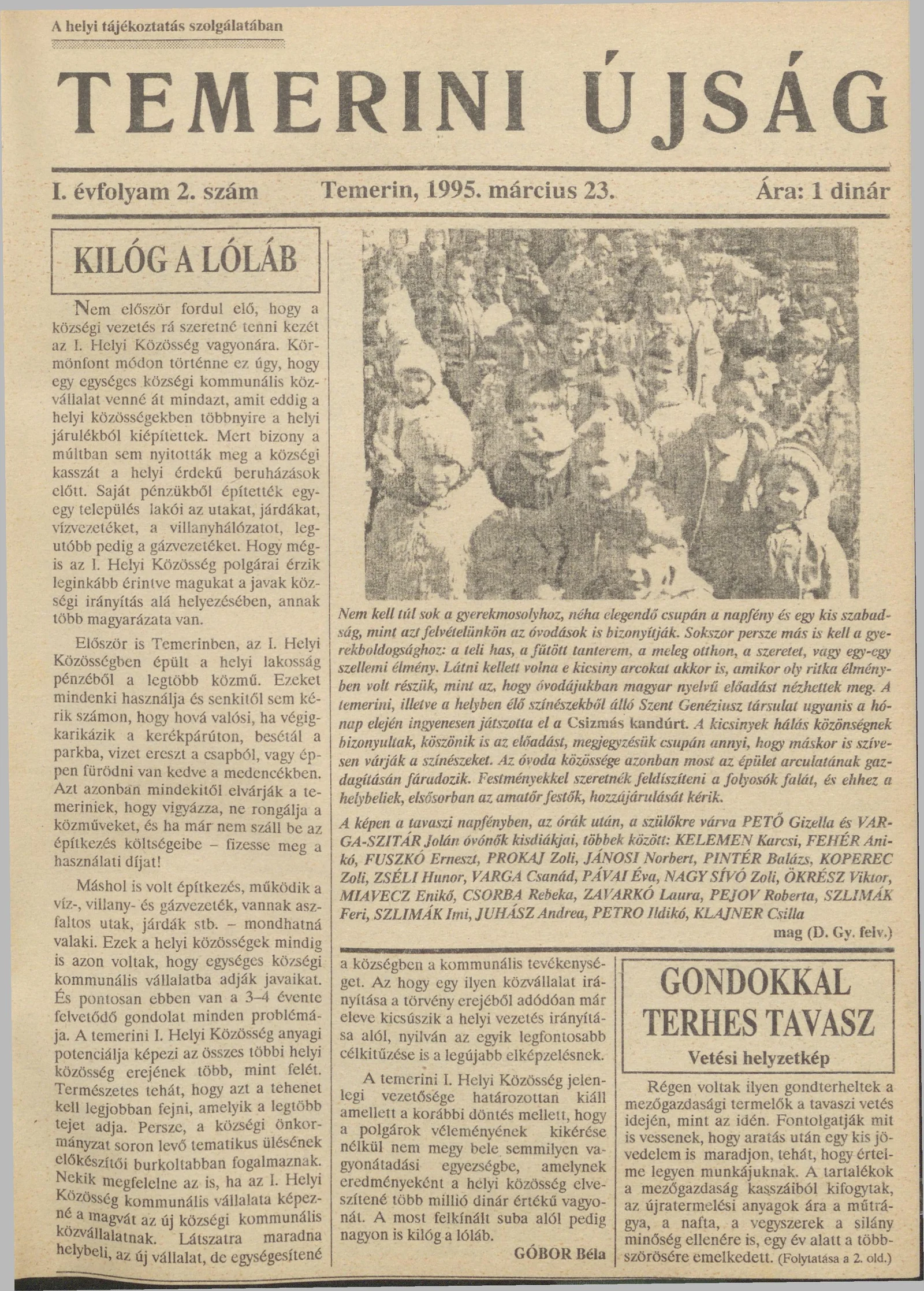 Temerini Újság, 1. évf. 1995. március 23. 2. sz.