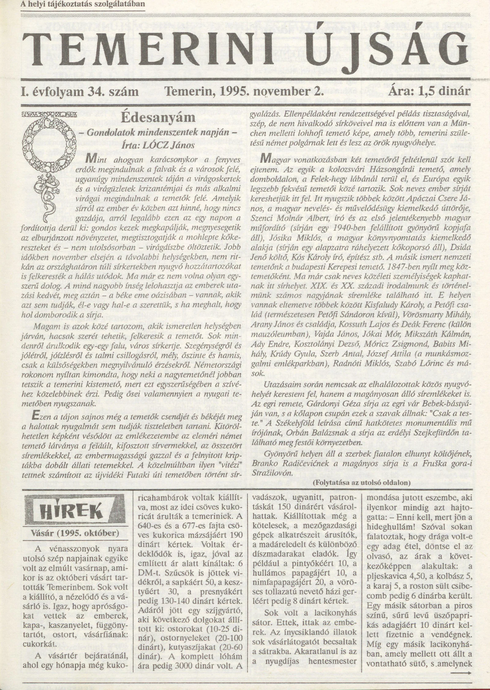 Temerini Újság, 1. évf. 1995. november 2. 34. sz.