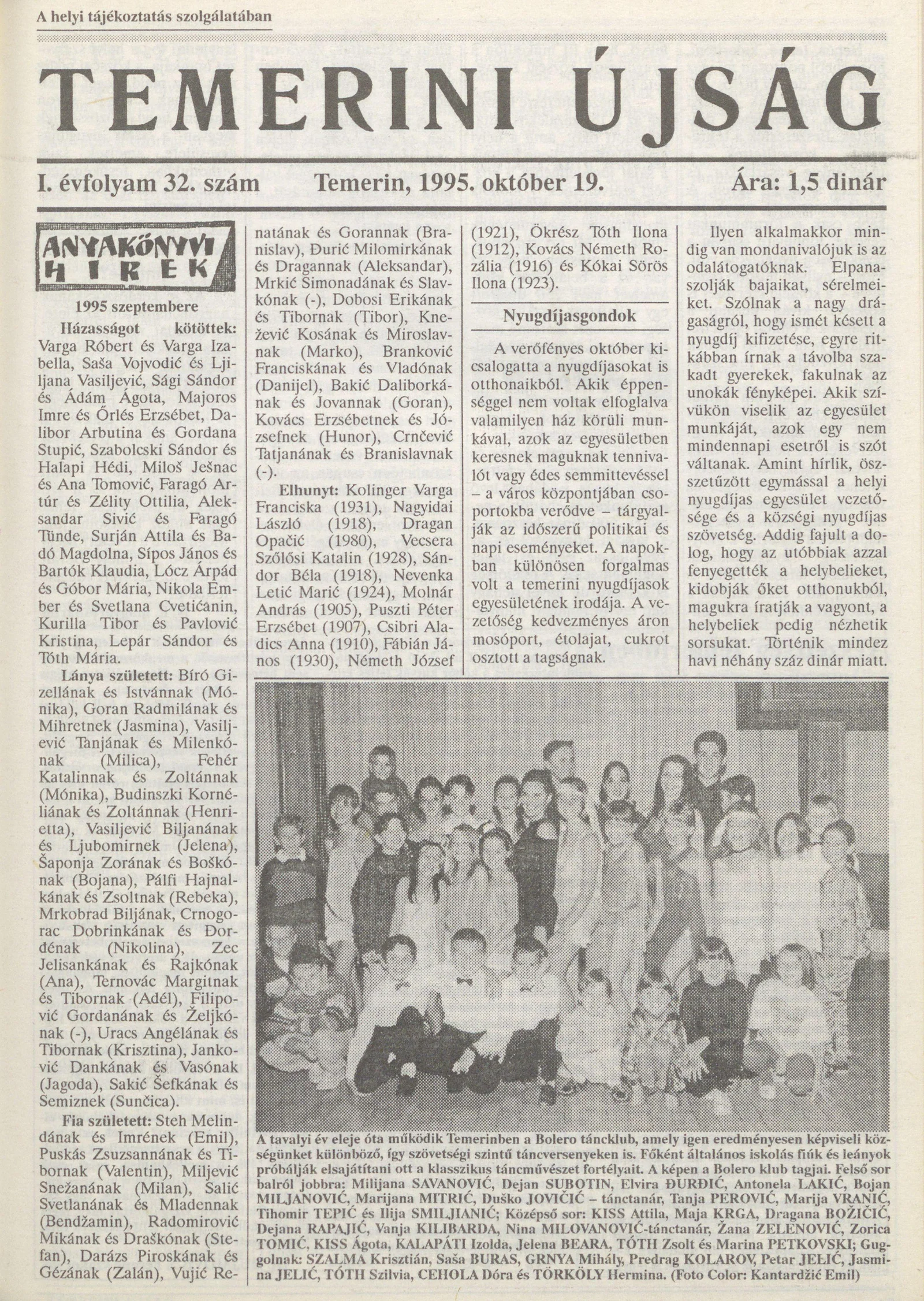 Temerini Újság, 1. évf. 1995. október 19. 32. sz.