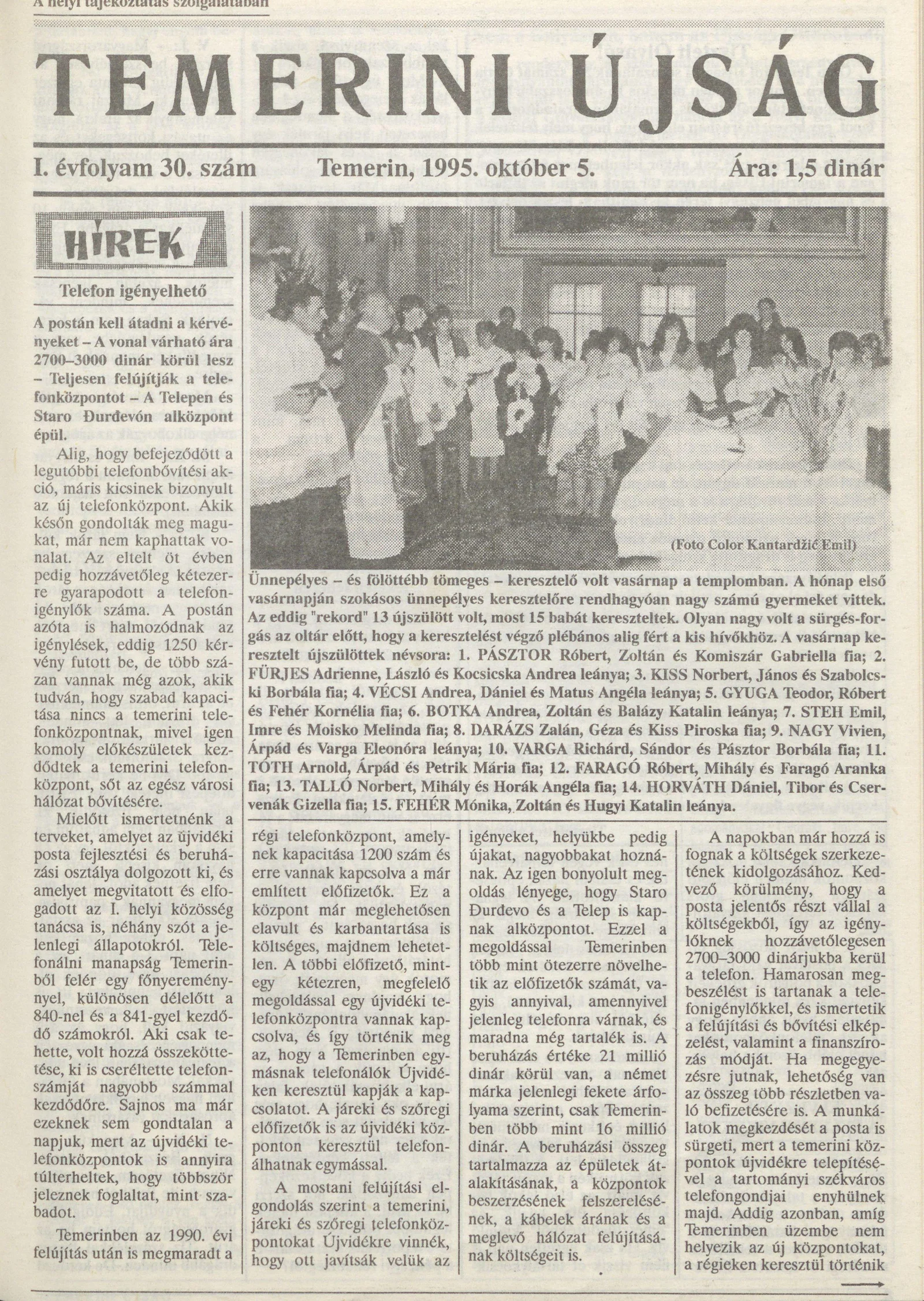 Temerini Újság, 1. évf. 1995. október 5. 30. sz.
