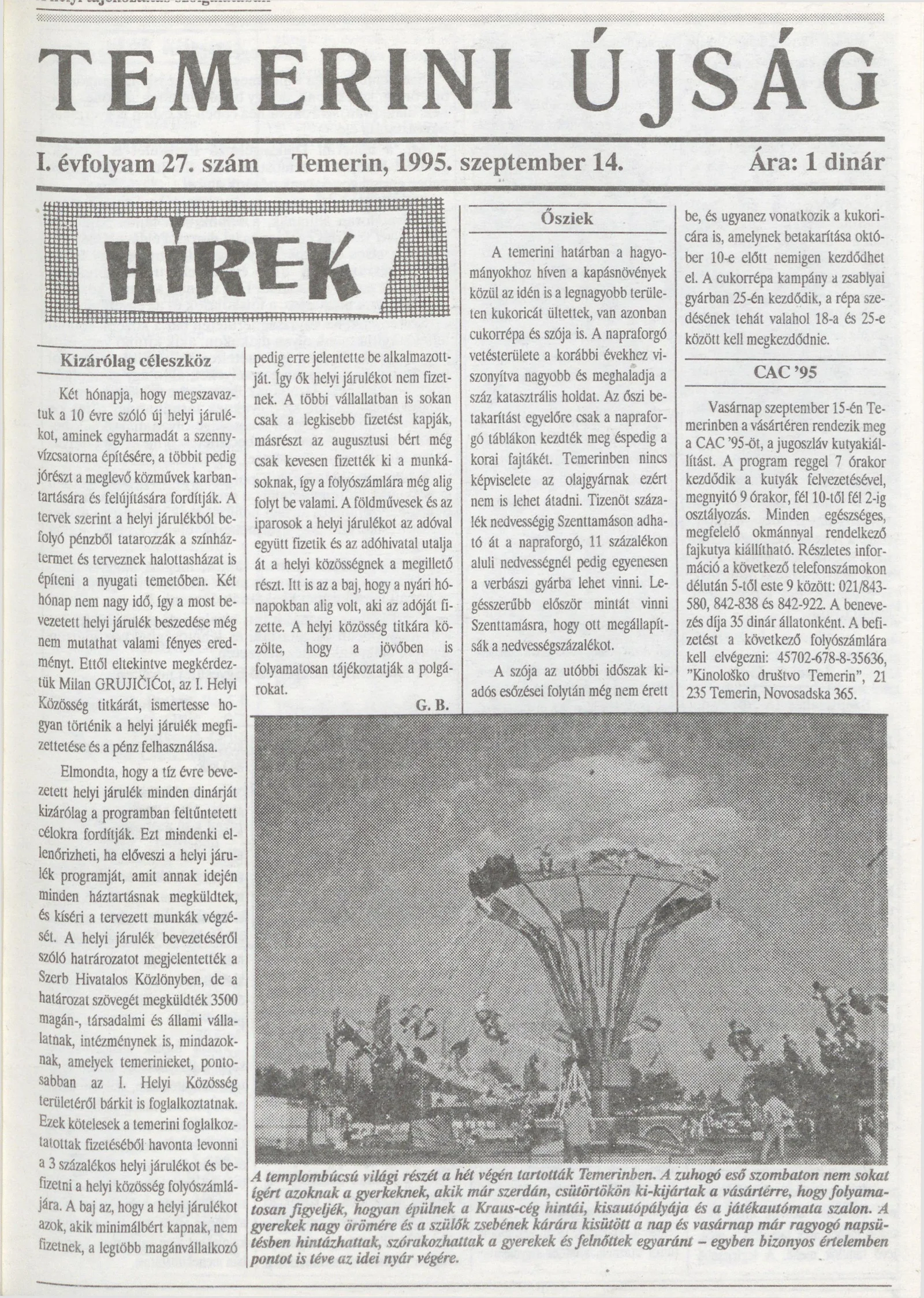 Temerini Újság, 1. évf. 1995. szeptember 14. 27. sz.