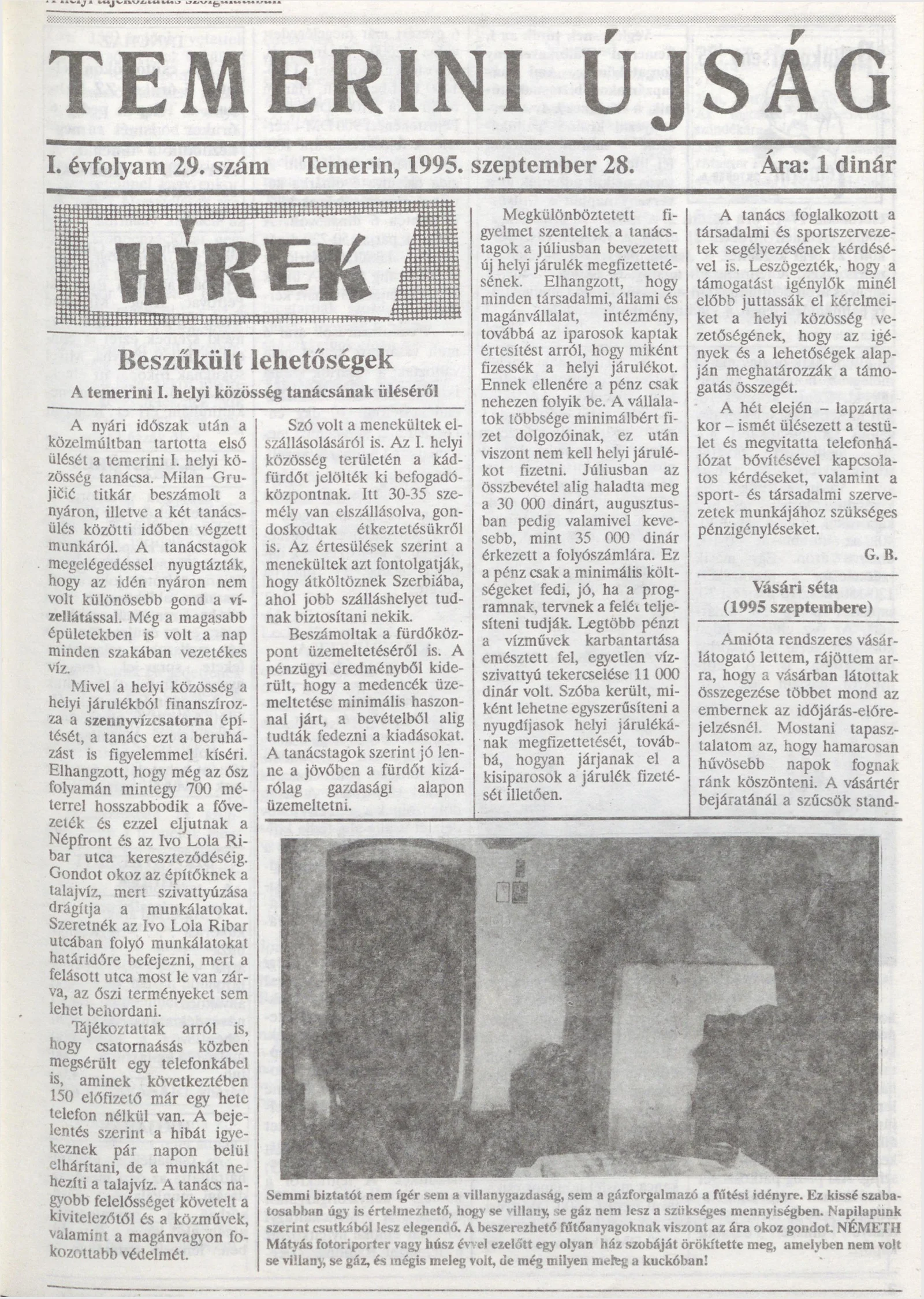 Temerini Újság, 1. évf. 1995. szeptember 28. 29. sz.