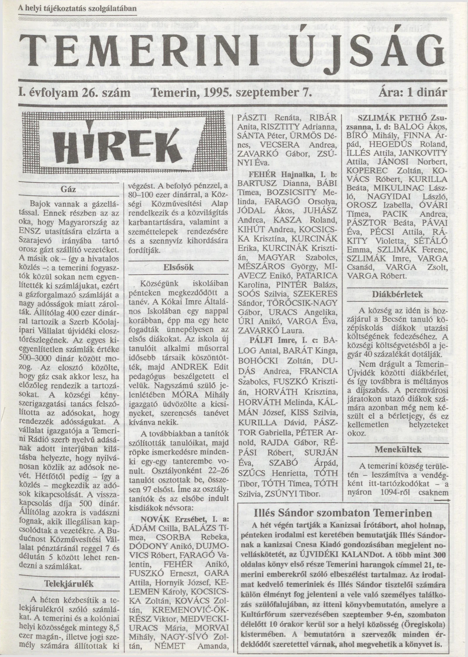 Temerini Újság, 1. évf. 1995. szeptember 7. 26. sz.
