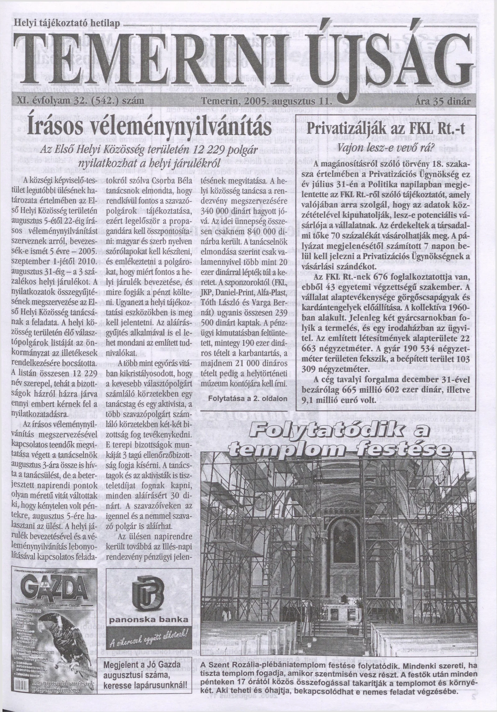 Temerini Újság, 11. évf. 2005. augusztus 11. 32. sz.