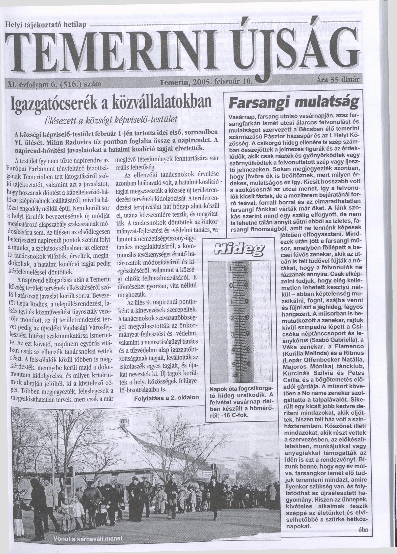 Temerini Újság, 11. évf. 2005. február 10. 6. sz.