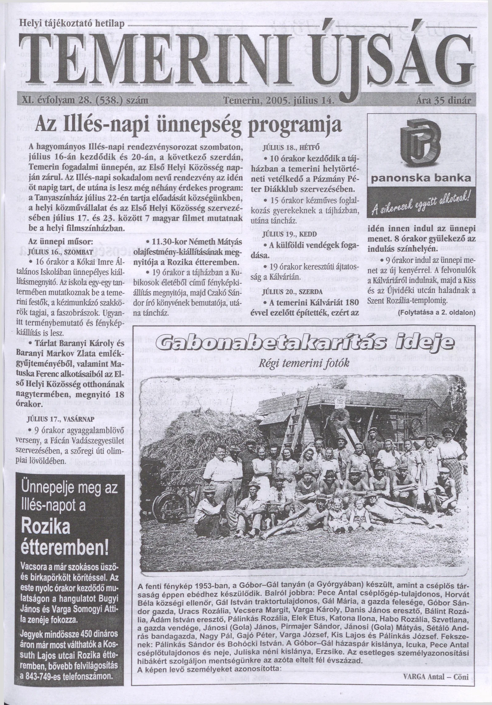 Temerini Újság, 11. évf. 2005. július 14. 28. sz.