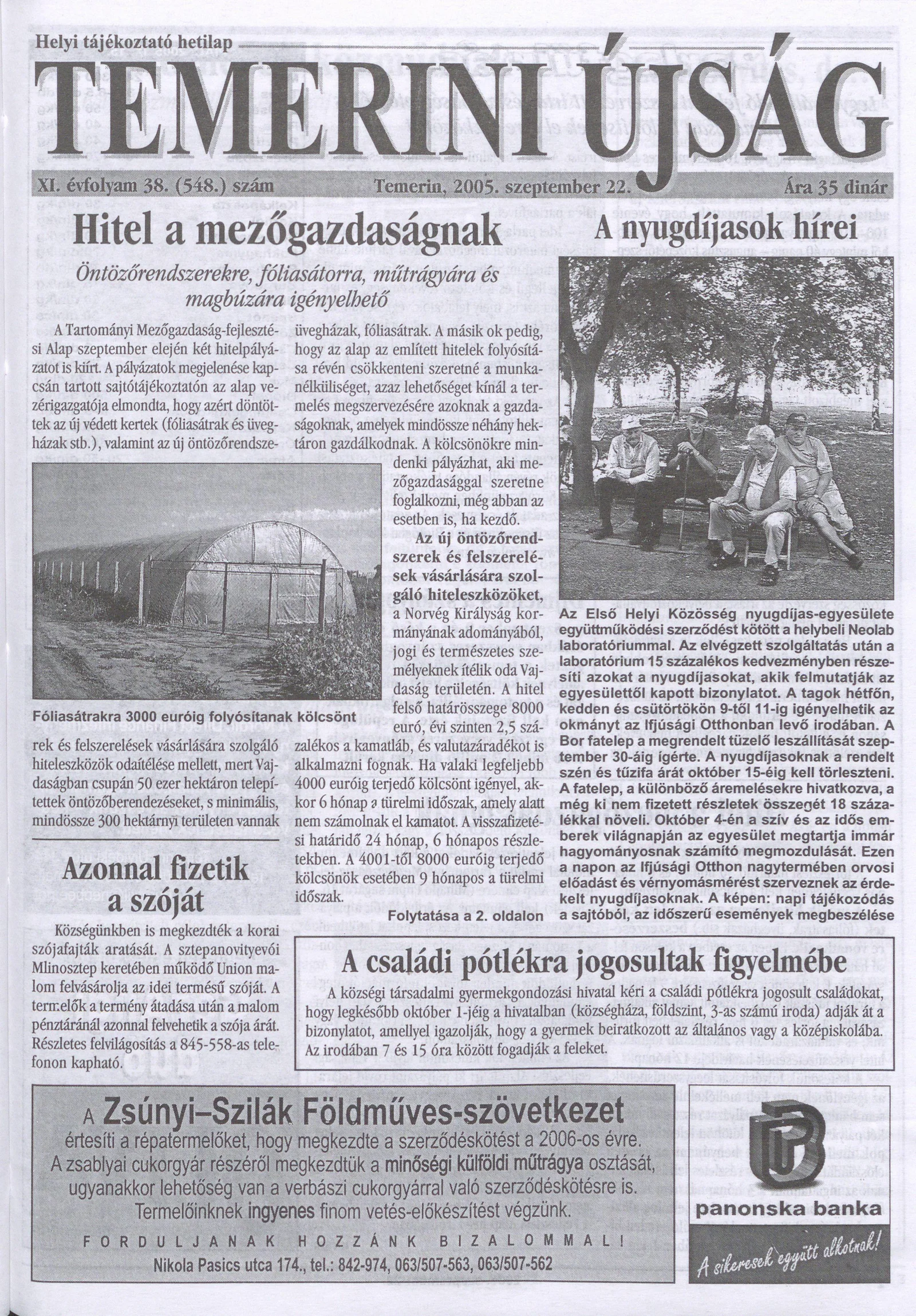 Temerini Újság, 11. évf. 2005. szeptember 22. 38. sz.