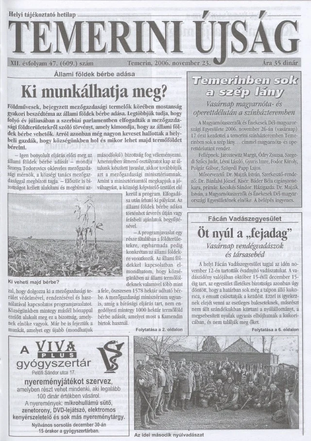 Temerini Újság, 12. évf. 2006. november 23. 47. sz.