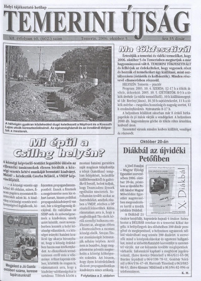 Temerini Újság, 12. évf. 2006. október 5. 40. sz.