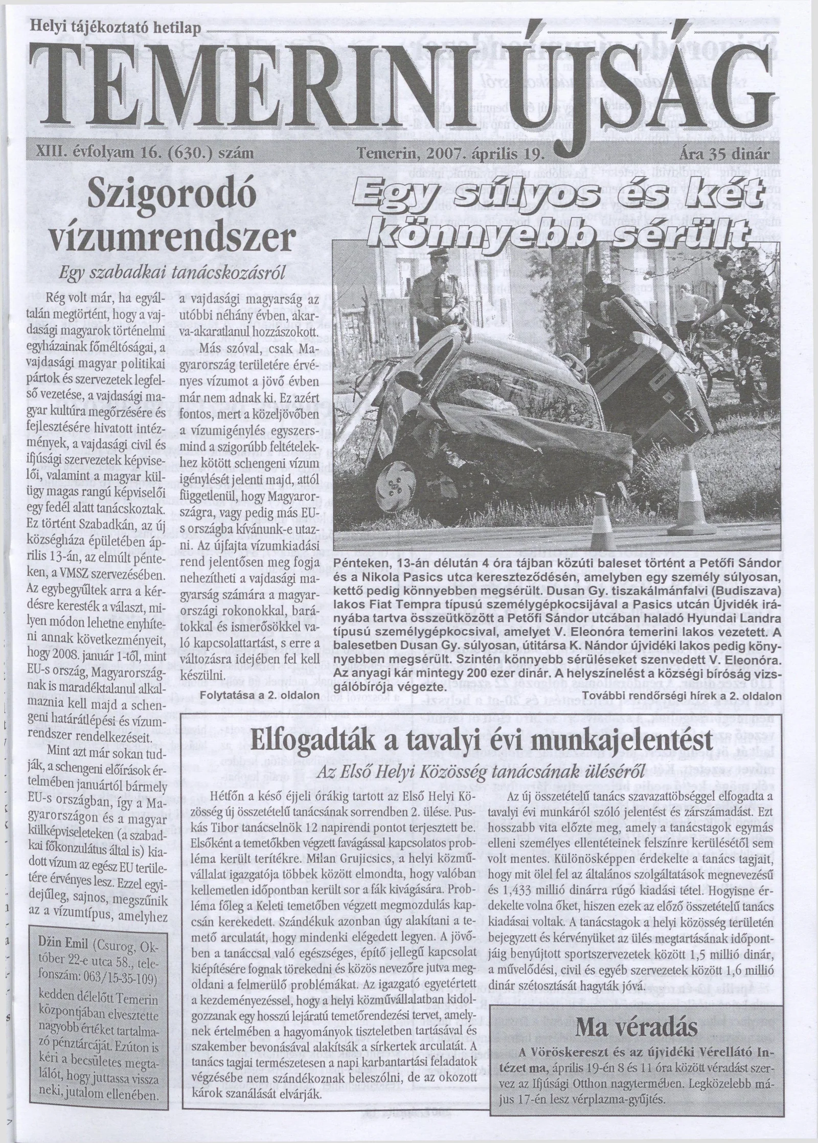 Temerini Újság, 13. évf. 2007. április 19. 16. sz.