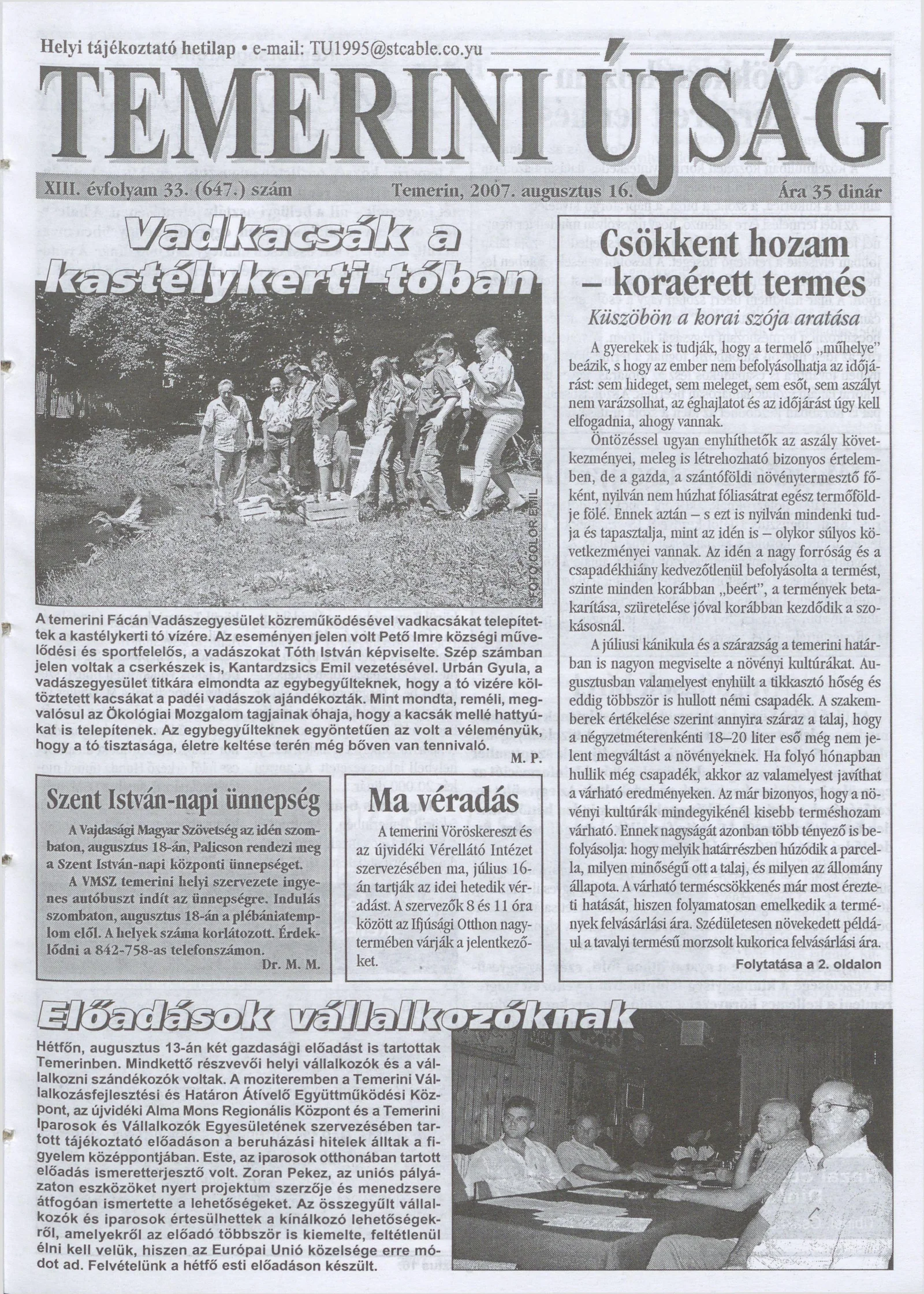 Temerini Újság, 13. évf. 2007. augusztus 16. 33. sz.