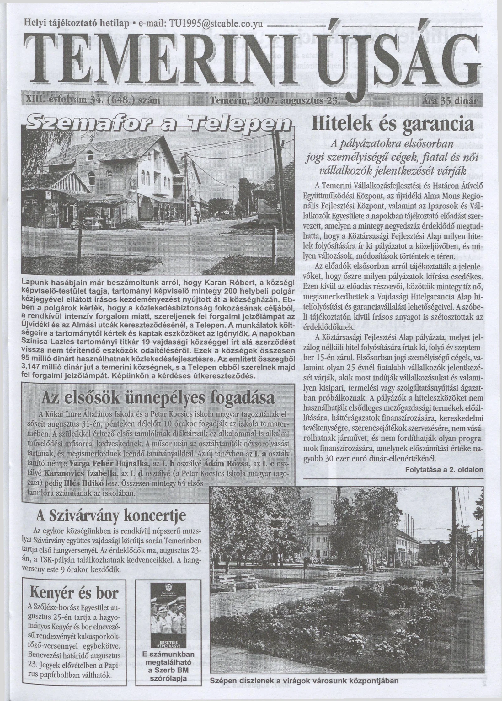 Temerini Újság, 13. évf. 2007. augusztus 23. 34. sz.