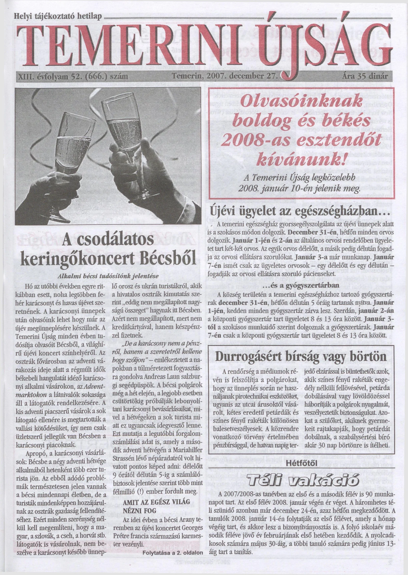 Temerini Újság, 13. évf. 2007. december 27. 52. sz.