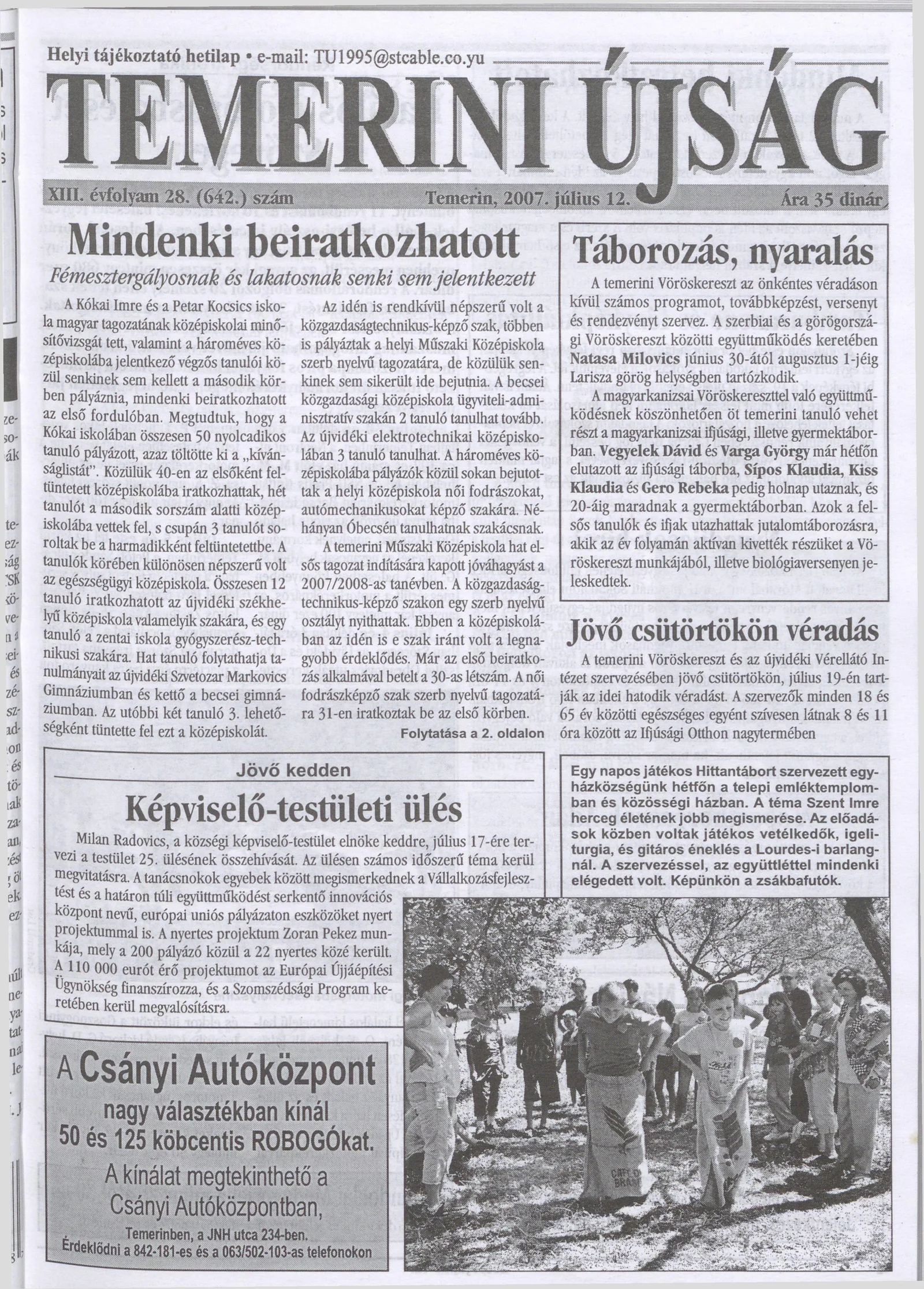 Temerini Újság, 13. évf. 2007. július 12. 28. sz.