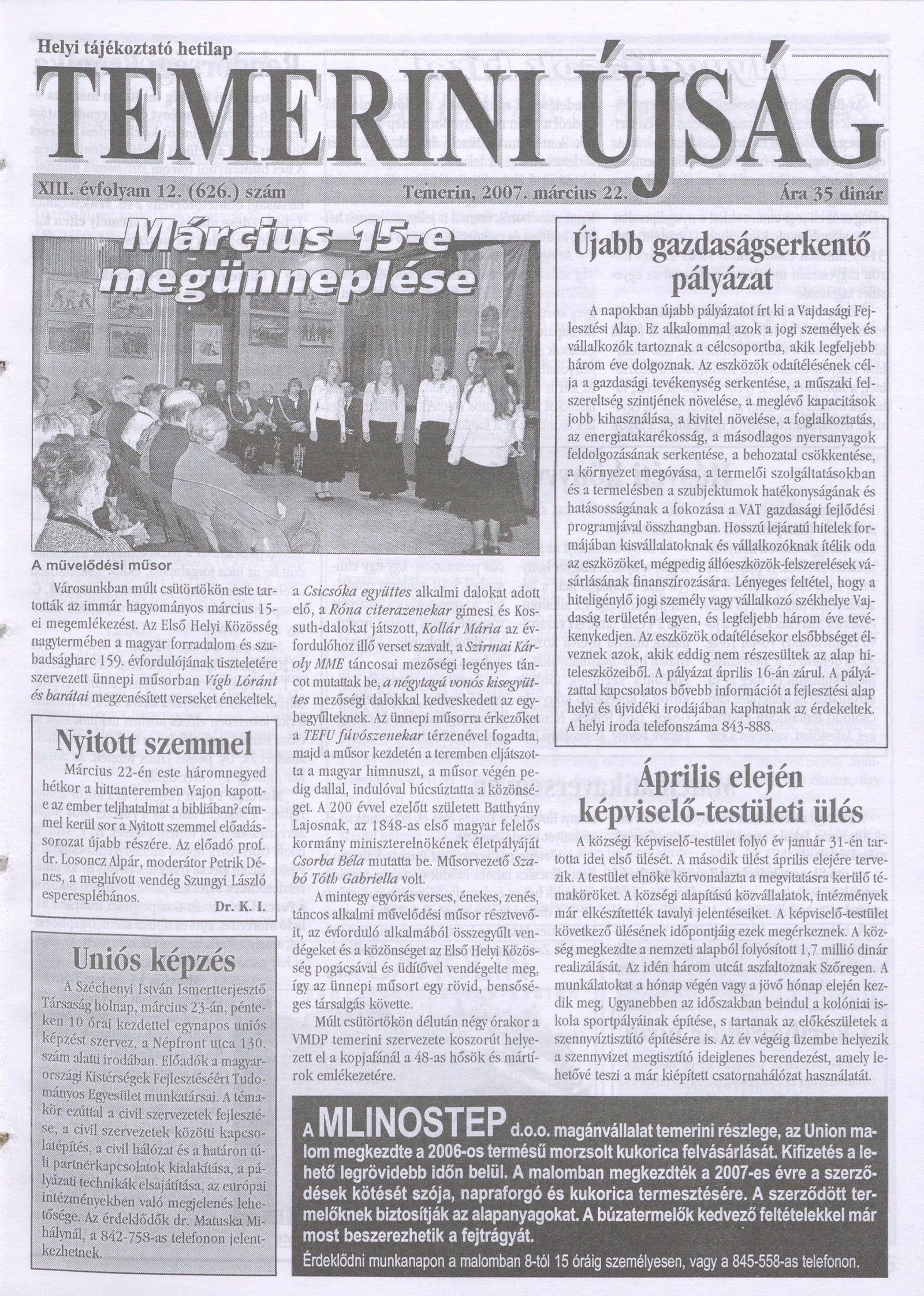 Temerini Újság, 13. évf. 2007. március 22. 12. sz.