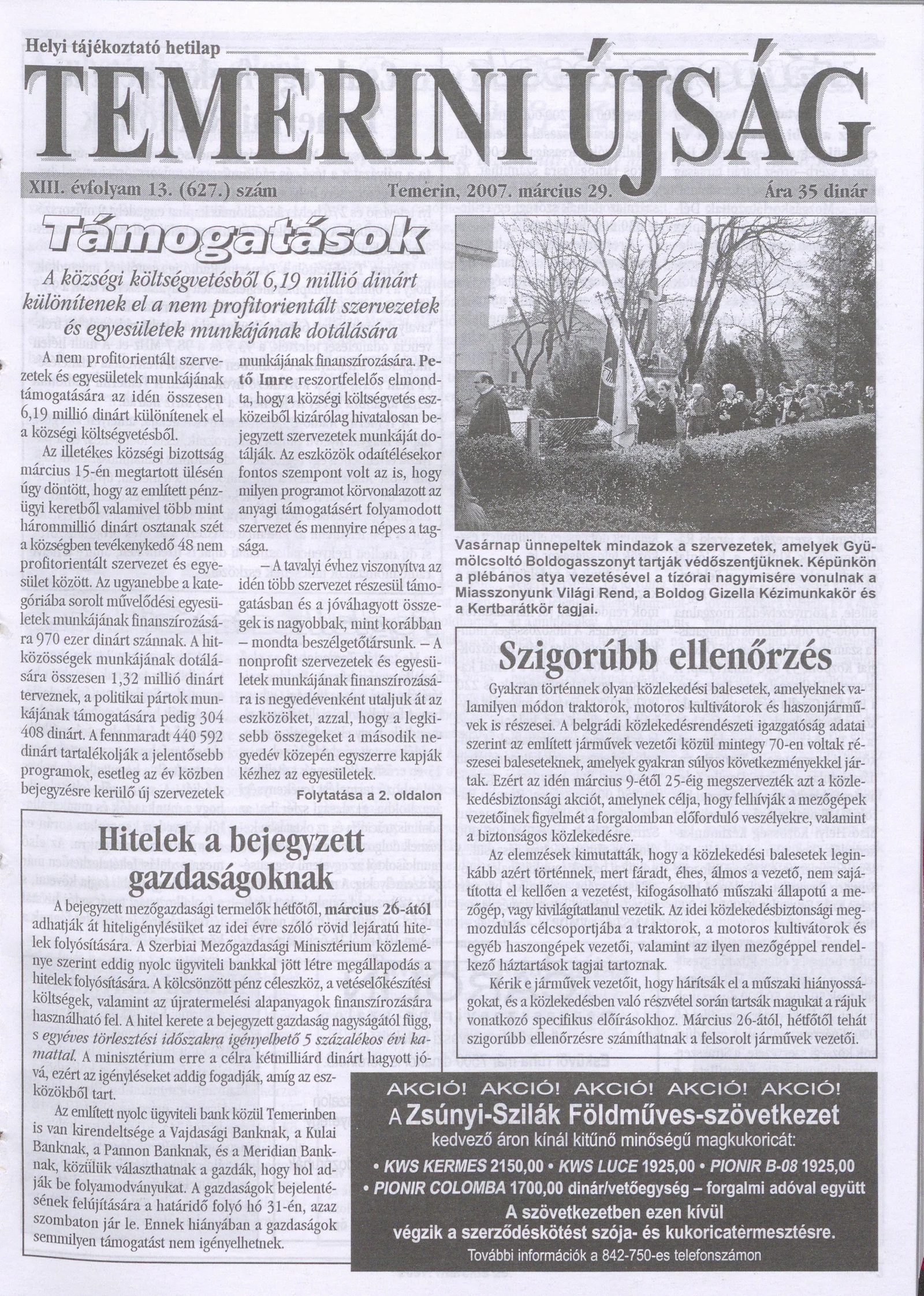 Temerini Újság, 13. évf. 2007. március 29. 13. sz.
