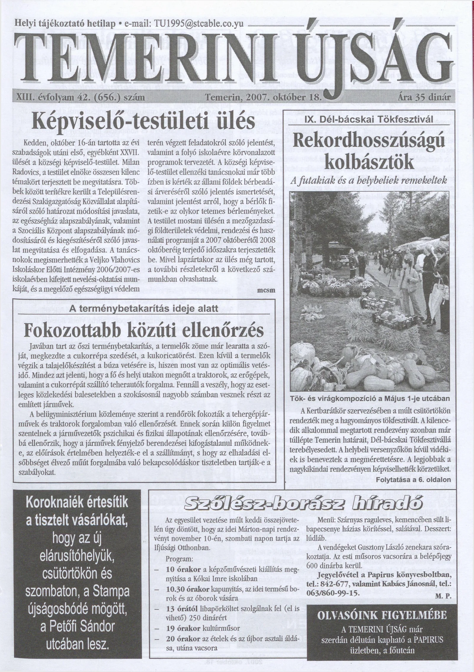 Temerini Újság, 13. évf. 2007. október 18. 42. sz.