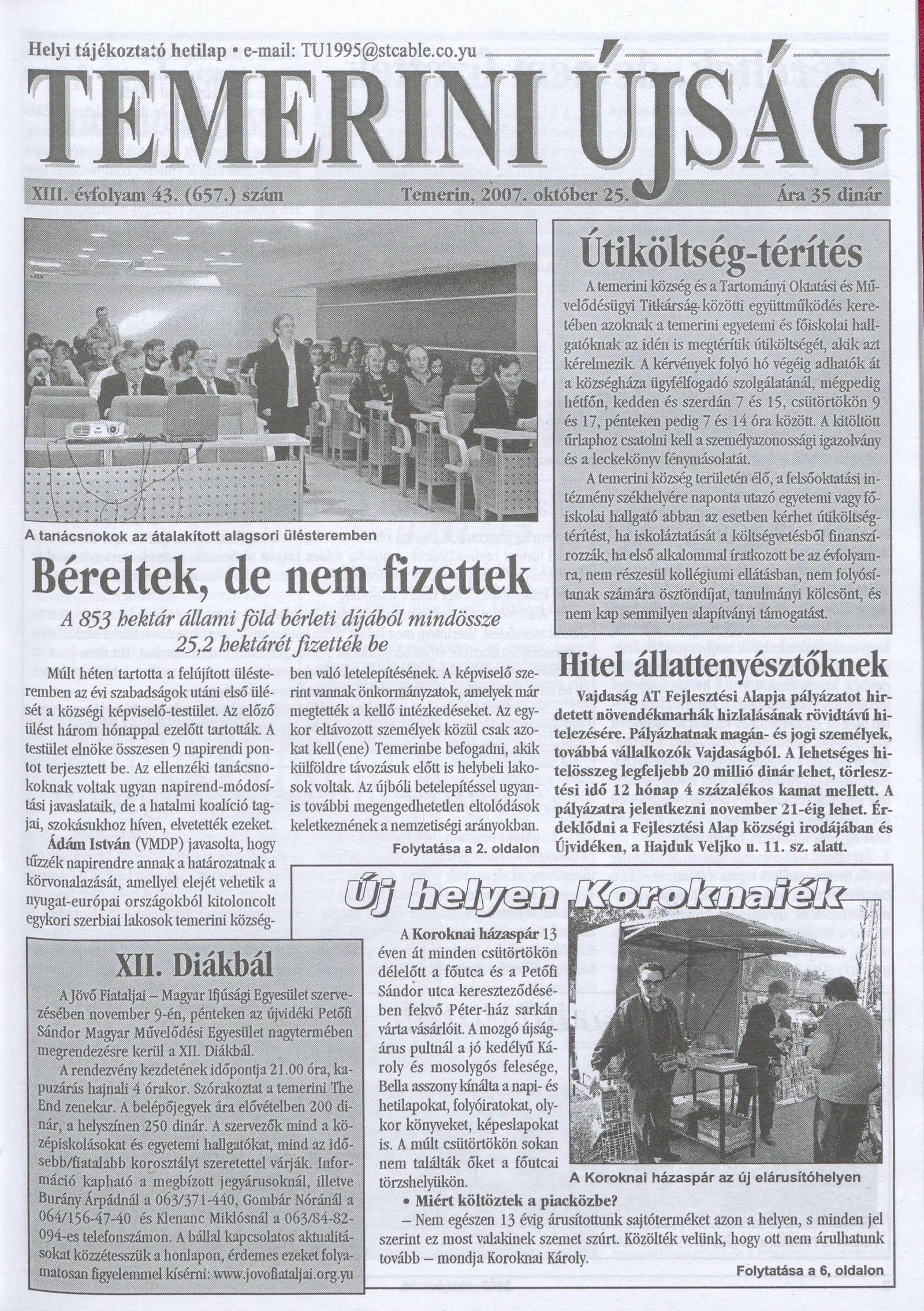 Temerini Újság, 13. évf. 2007. október 25. 43. sz.