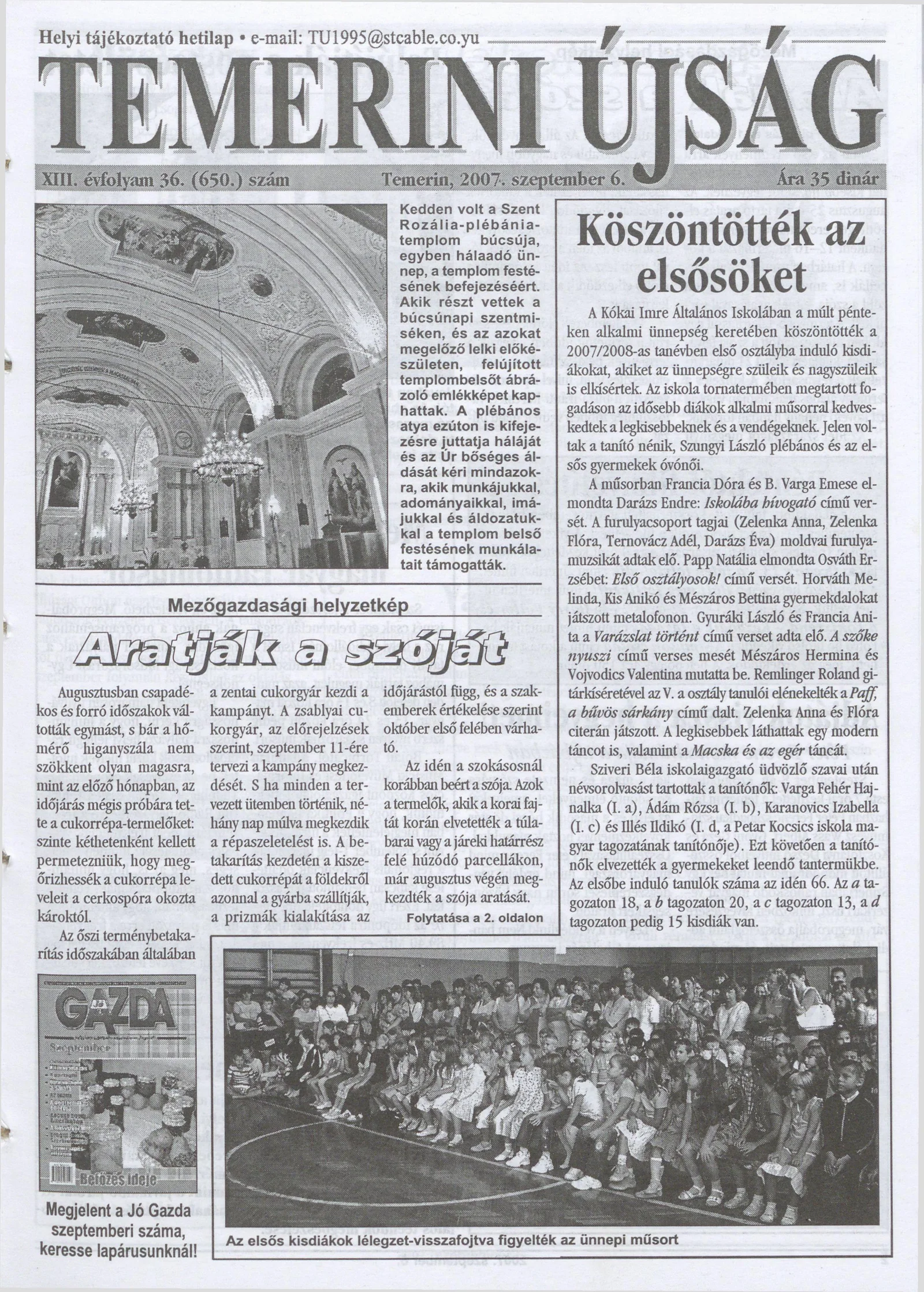 Temerini Újság, 13. évf. 2007. szeptember 6. 36. sz.