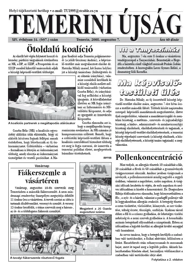Temerini Újság, 14. évf. 2008. augusztus 7. 31. sz.