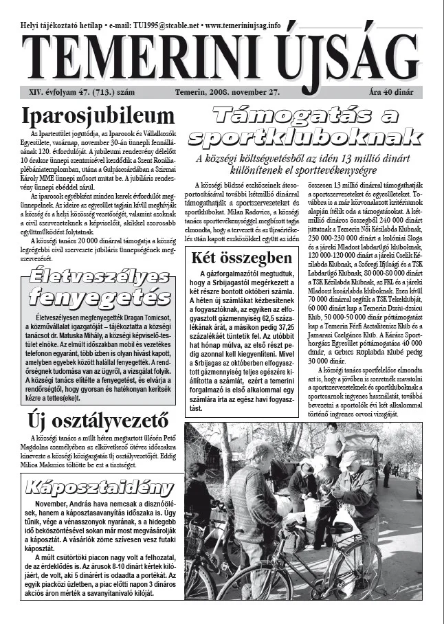 Temerini Újság, 14. évf. 2008. november 27. 47. sz.