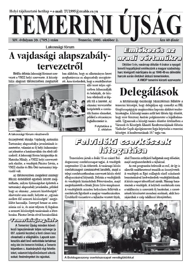 Temerini Újság, 14. évf. 2008. október 2. 39. sz.