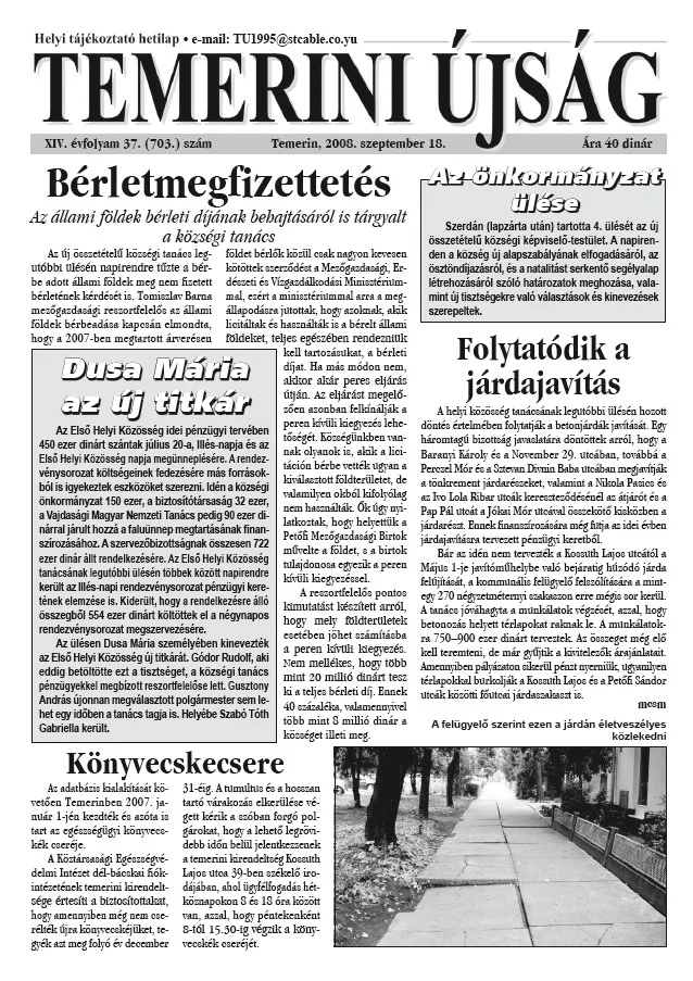 Temerini Újság, 14. évf. 2008. szeptember 18. 37. sz.