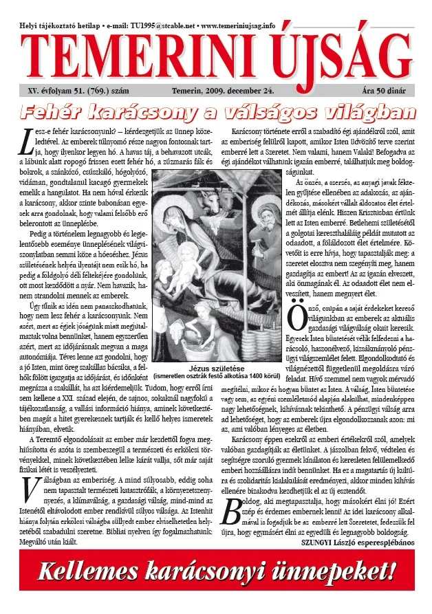 Temerini Újság, 15. évf. 2009. december 24. 51. sz.