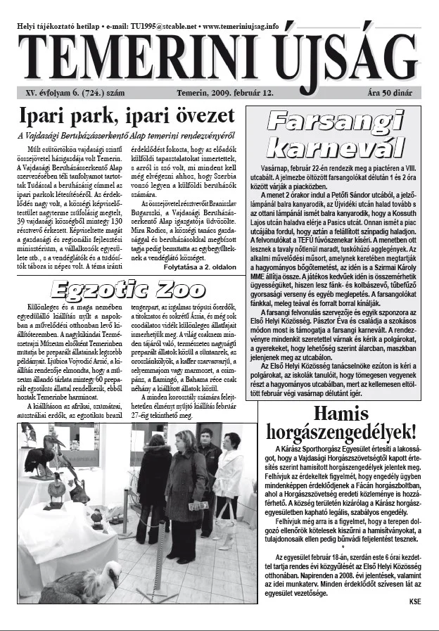 Temerini Újság, 15. évf. 2009. február 12. 6. sz.