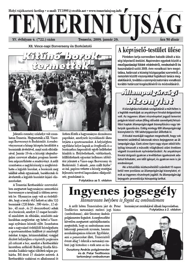 Temerini Újság, 15. évf. 2009. január 29. 4. sz.