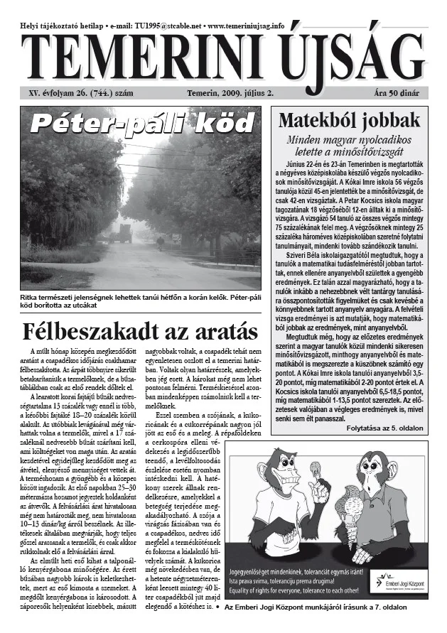 Temerini Újság, 15. évf. 2009. július 2. 26. sz.