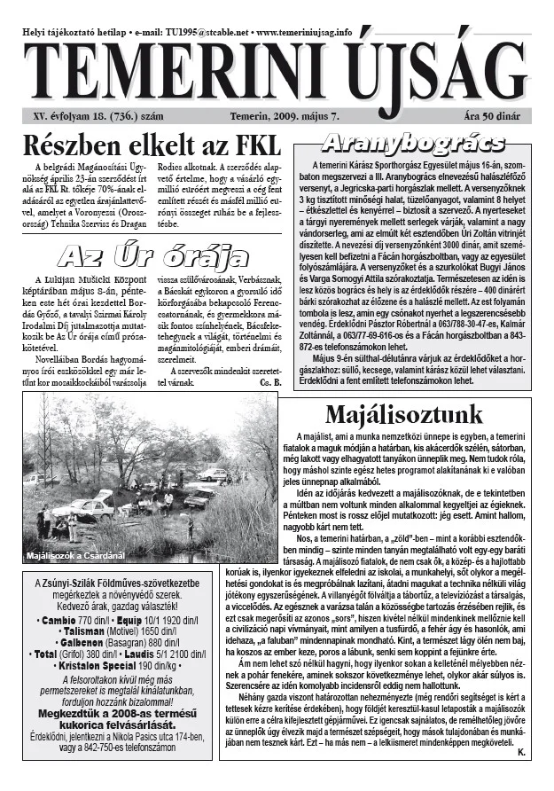 Temerini Újság, 15. évf. 2009. május 7. 18. sz.