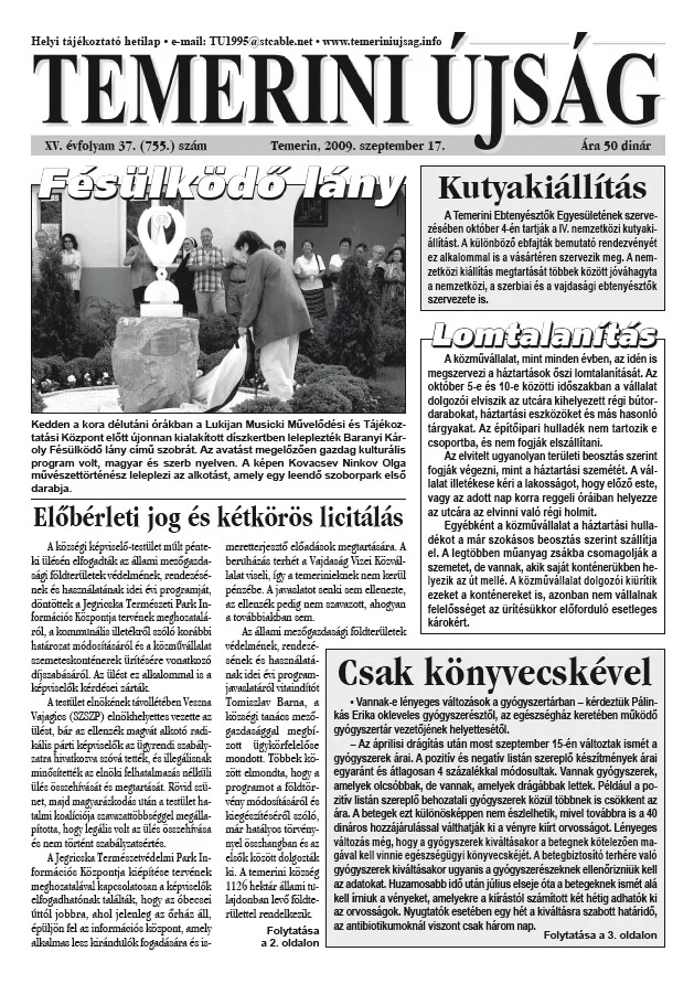 Temerini Újság, 15. évf. 2009. szeptember 17. 37. sz.