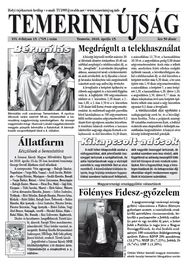 Temerini Újság, 16. évf. 2010. április 15. 15. sz.