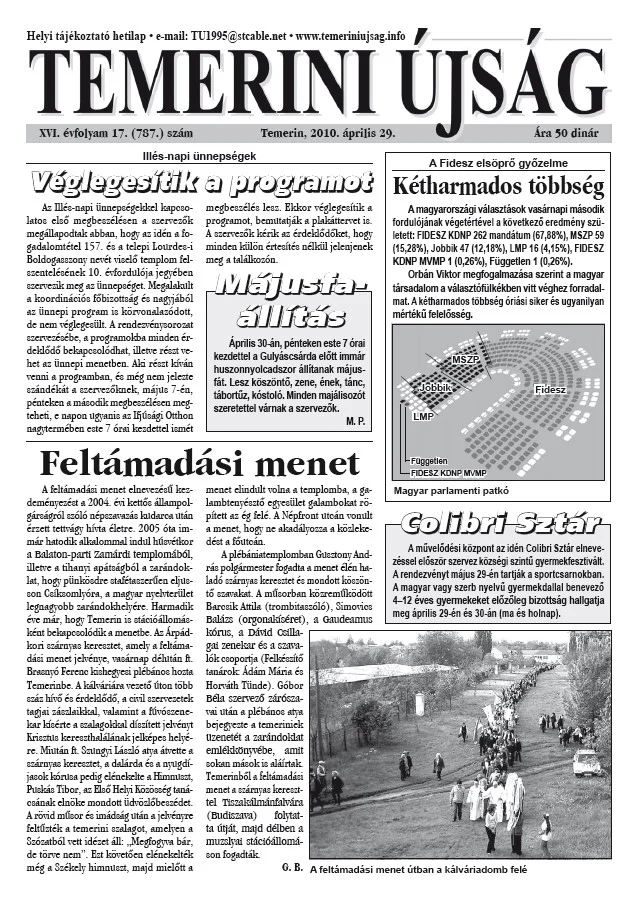 Temerini Újság, 16. évf. 2010. április 29. 17. sz.