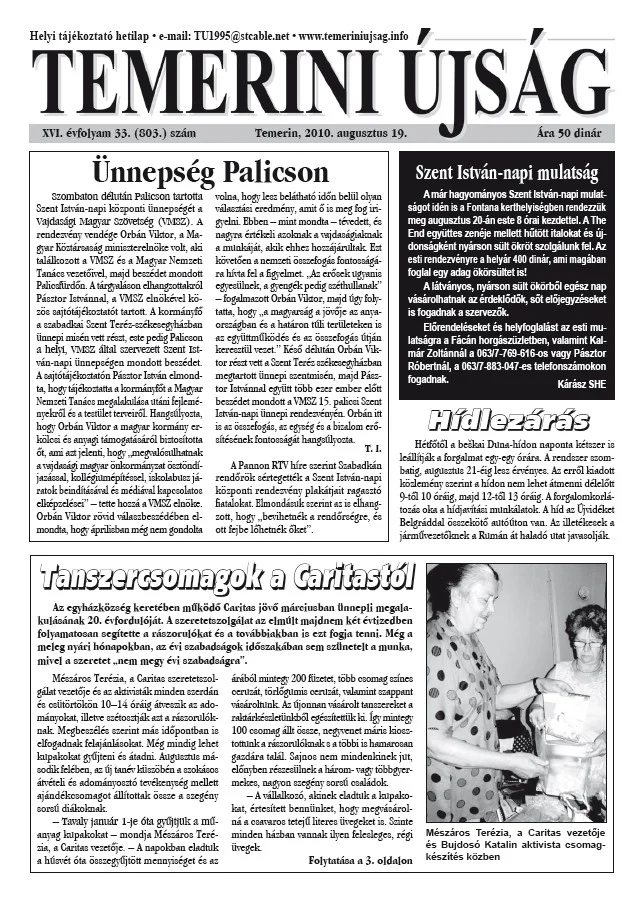 Temerini Újság, 16. évf. 2010. augusztus 19. 33. sz.
