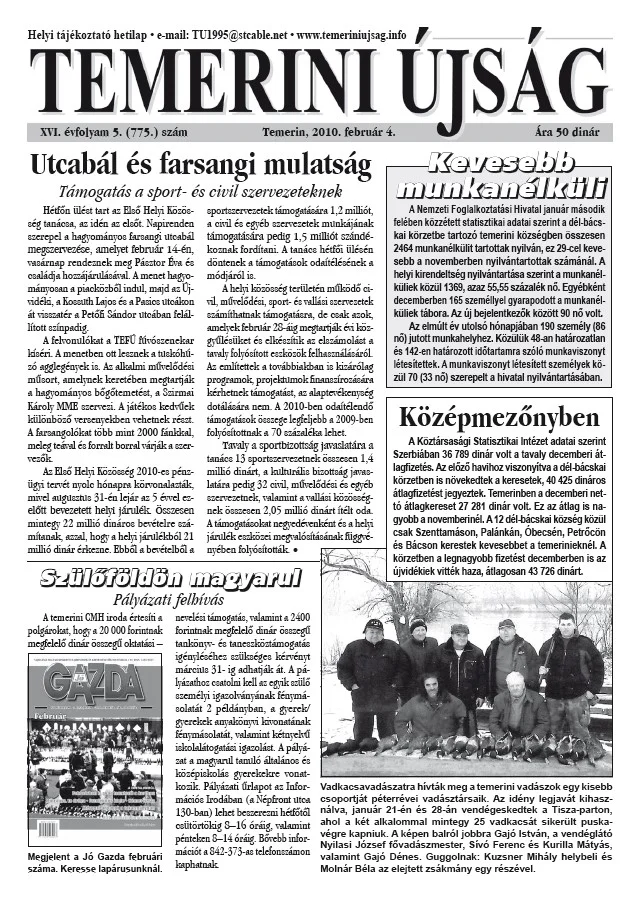 Temerini Újság, 16. évf. 2010. február 4. 5. sz.