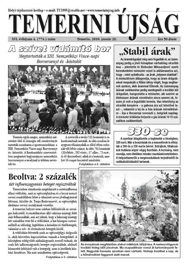 Temerini Újság, 16. évf. 2010. január 28. 4. sz.